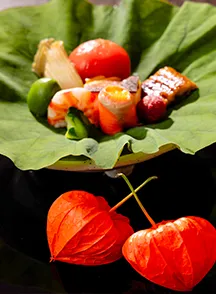 新鮮な地魚、旬の野菜などを用いて、素材が持つ本来の味を大事に活かした調理でお召し上がりいただきます。